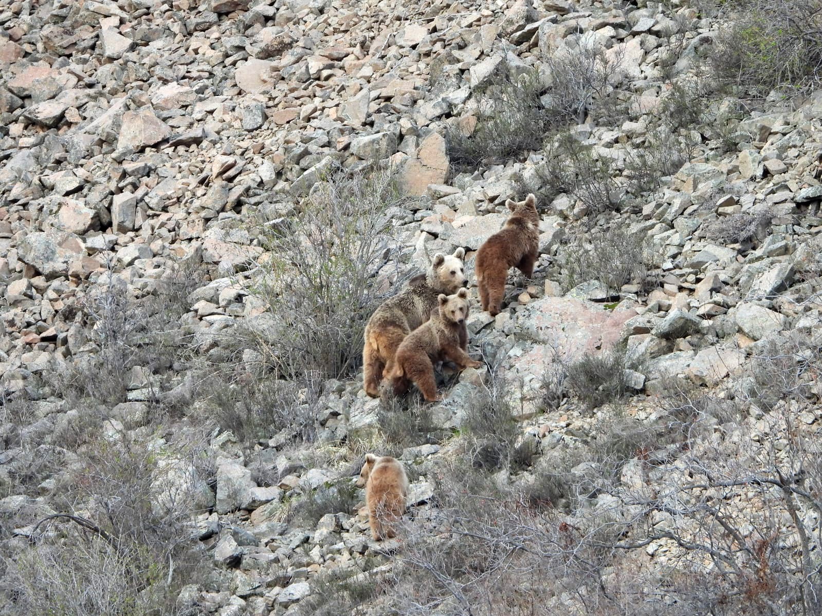 Erzurum’un İspir ilçesi doğasıyla göz kamaştıran bir yer ama böyle bu anı yakalamak gerçekten olağanüstü. Bülent Erkan’ın hem sabrı hem de doğaya olan tutkusu sayesinde bu muhteşem görüntüler ortaya çıkmış. Anne ayı ve üç yavruyu birlikte görmek nadir bir şans — hele ki kış uykusundan uyanmışken ve doğada serbestçe gezerken…