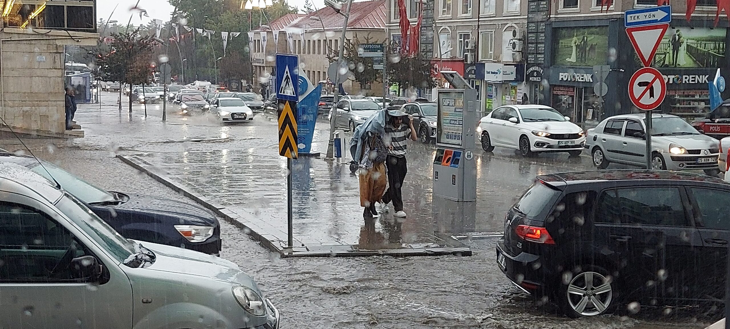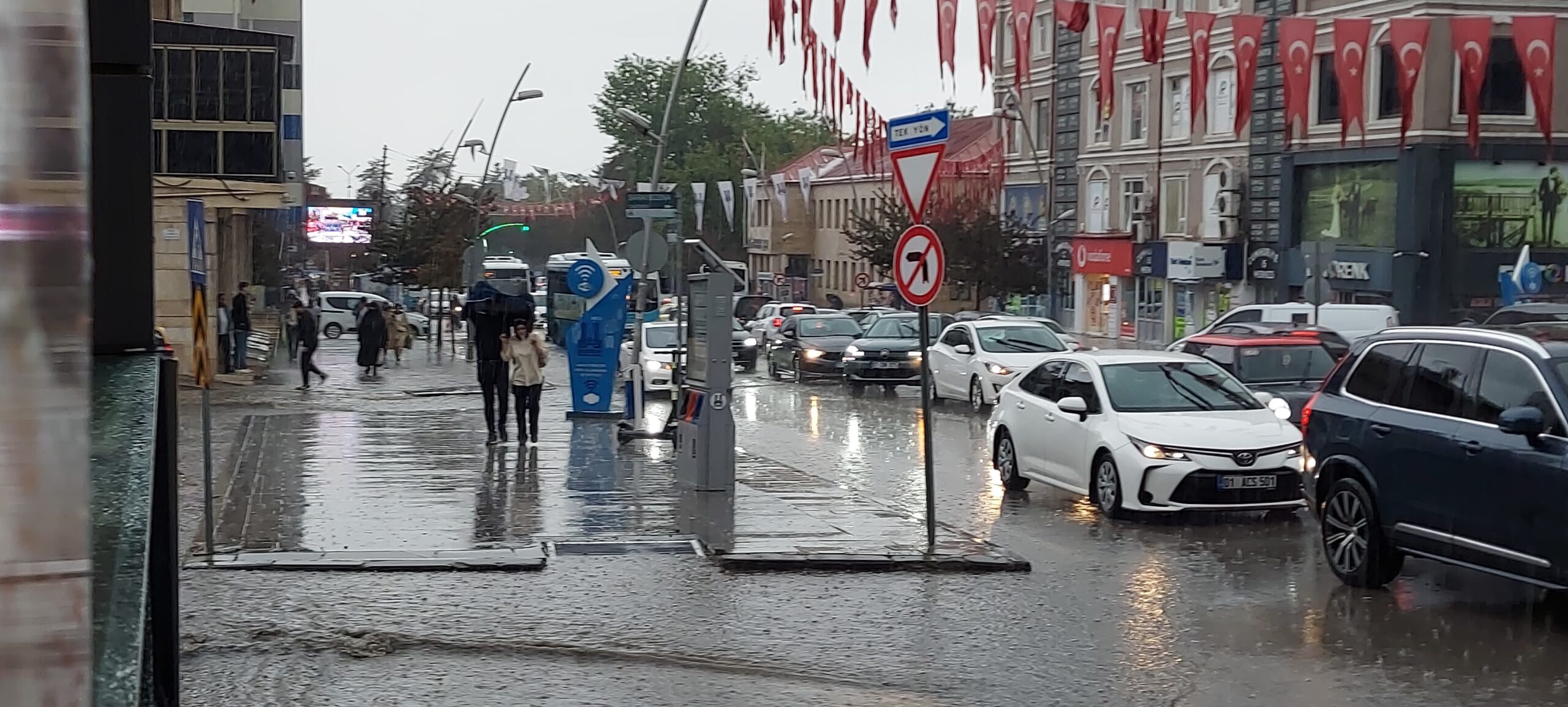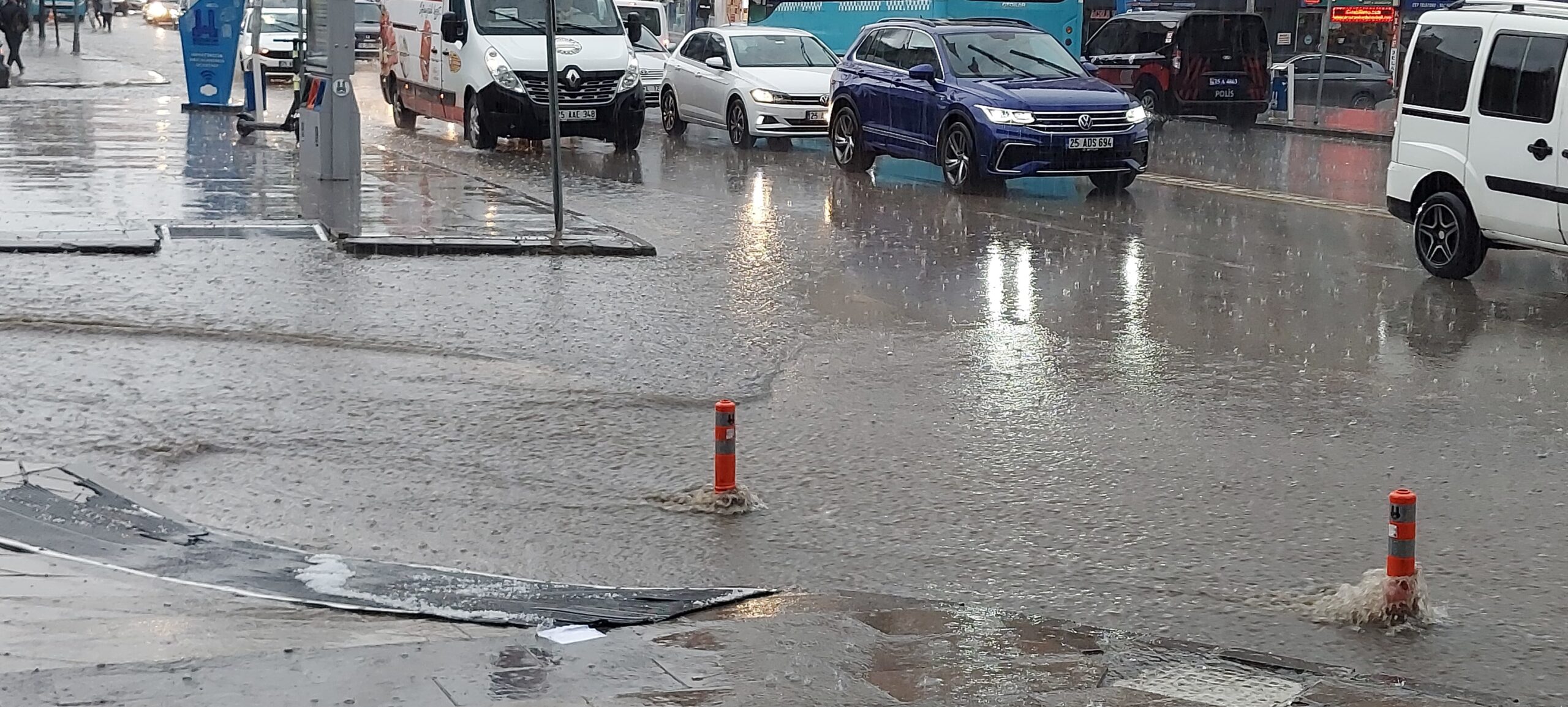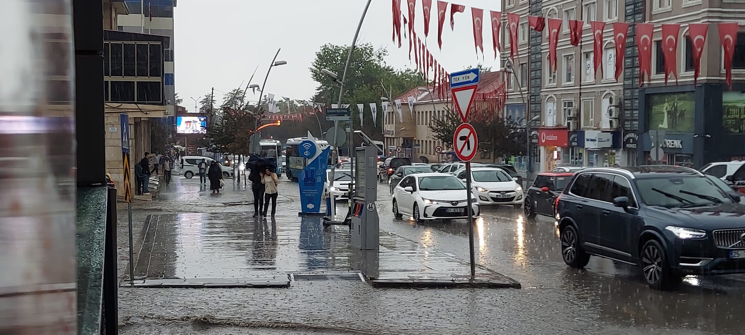 Erzurum’da öğle saatlerinde aniden bastıran sağanak yağış, kentte yaşamı olumsuz etkiledi. Kısa sürede etkisini artıran yağmur, zaman zaman dolu ile karışık şekilde yağdı ve cadde ile sokaklarda su birikintilerine neden oldu.