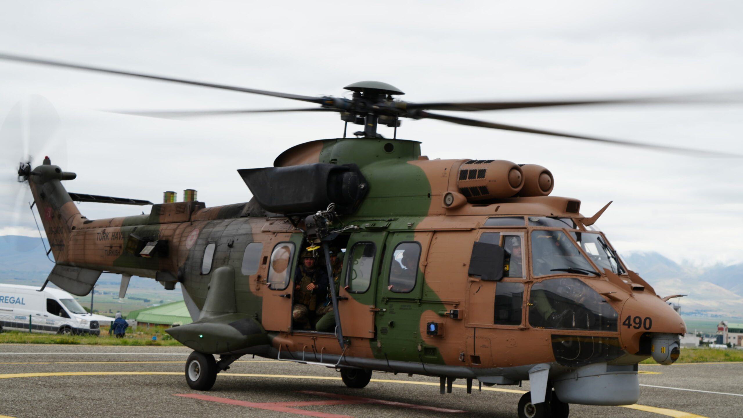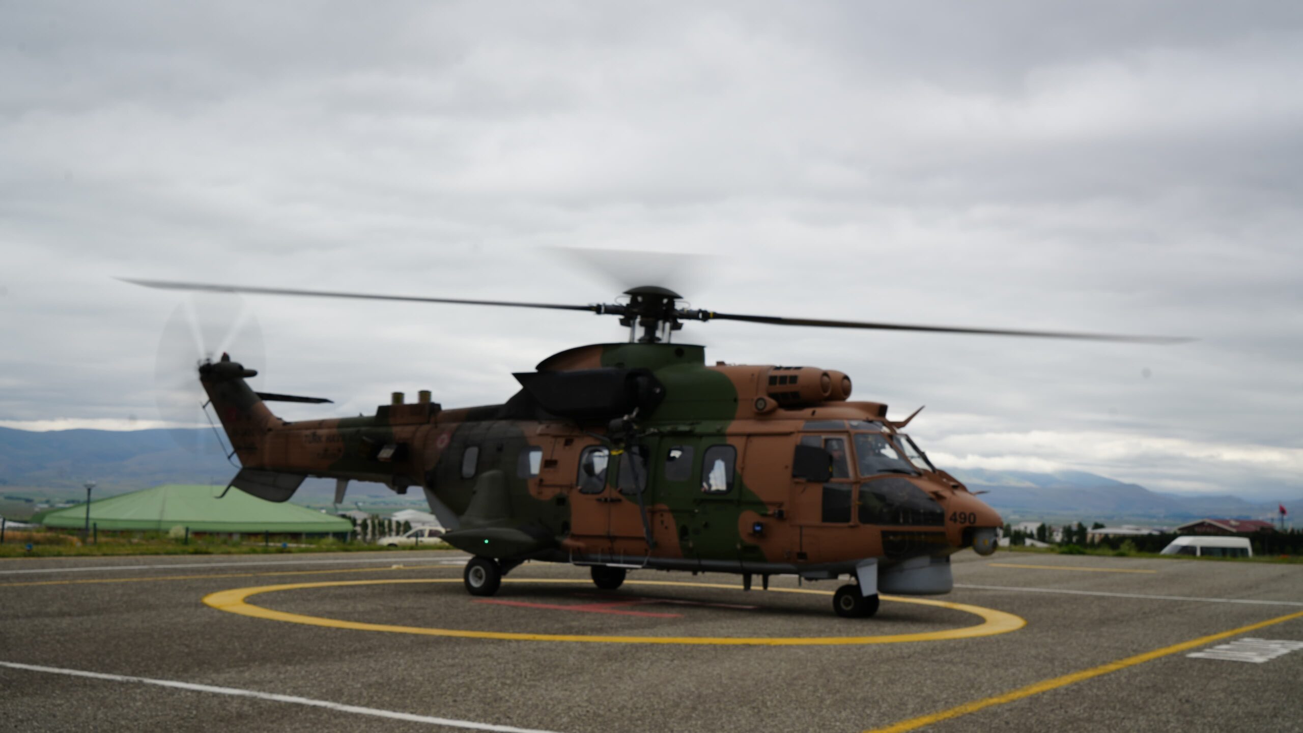 Helikopteri karşılayan Erzurum İl Jandarma Komutanı Tuğgeneral Doç. Dr. Engin Avcı, kurtarma çalışmaları hakkında bilgi aldı.