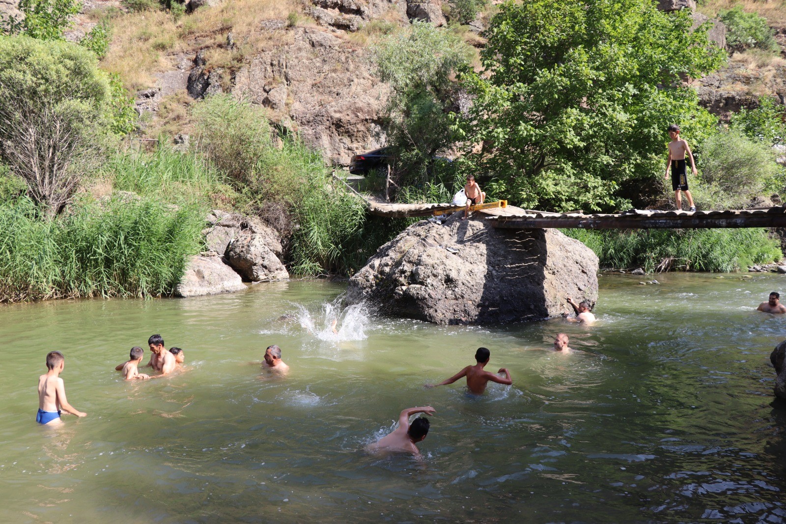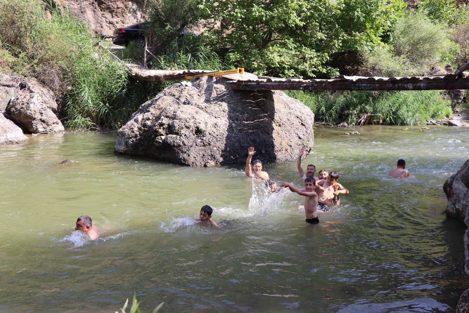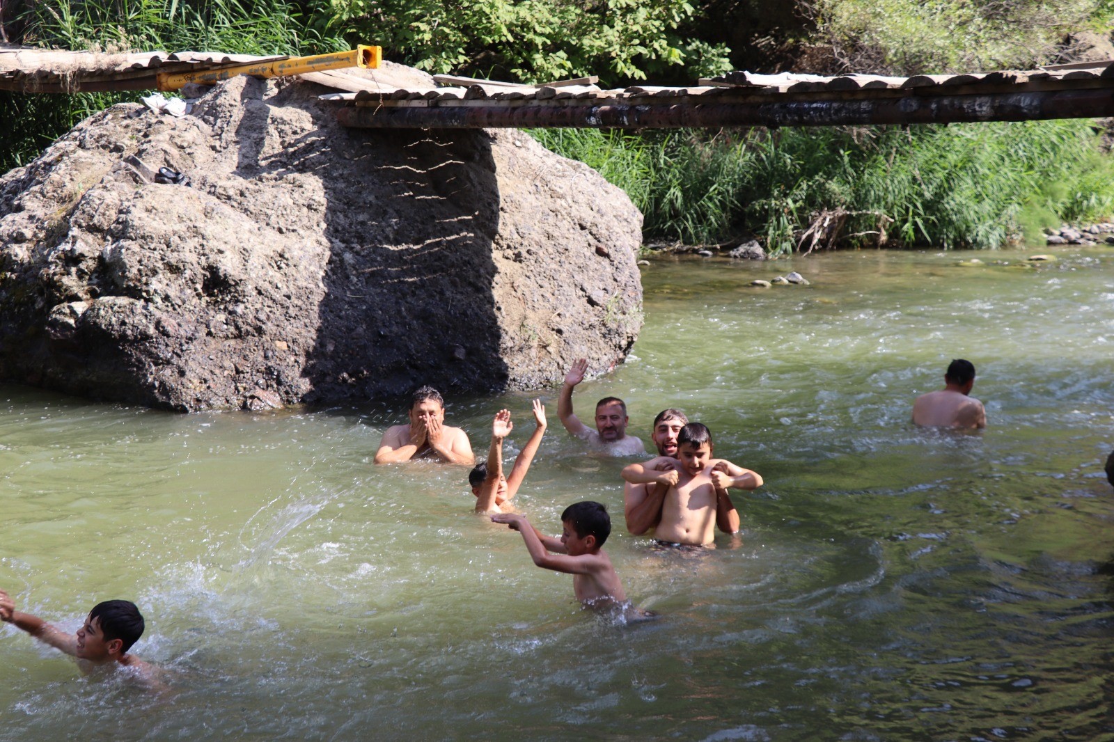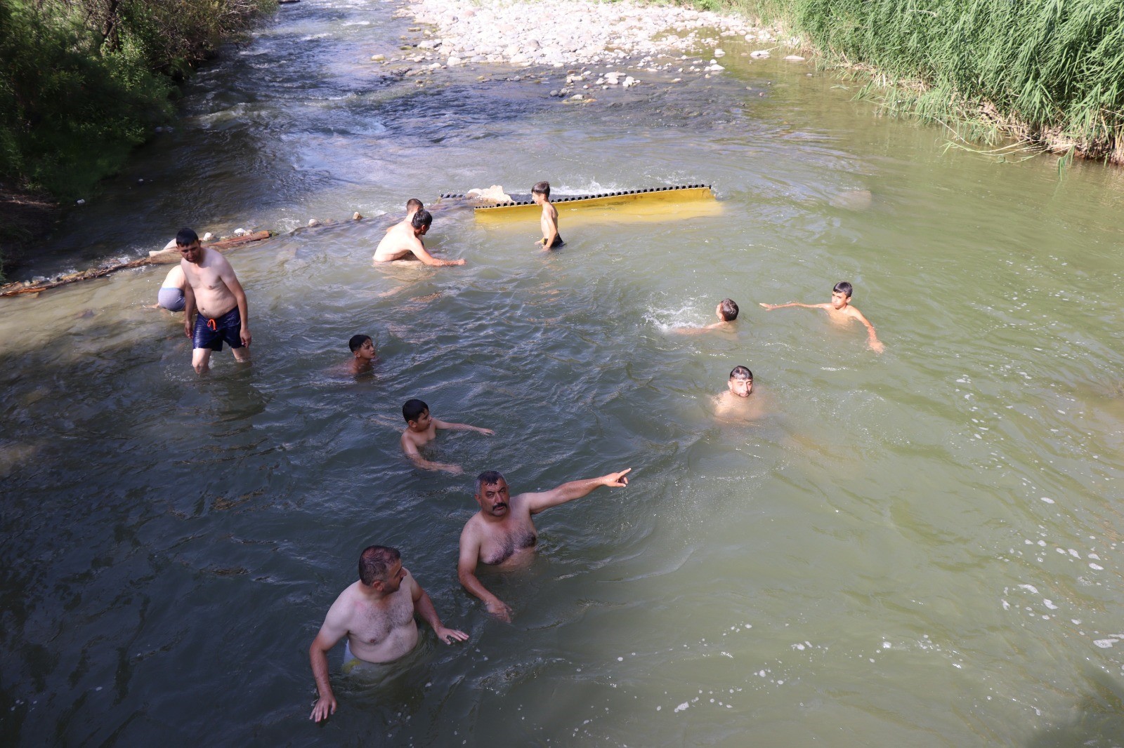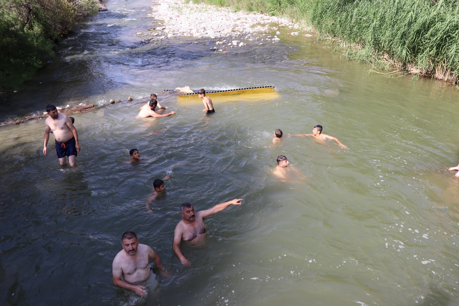 Erzurum’un Şenkaya ilçesine bağlı Akşar Mahallesi’nde, kavurucu sıcaklar nedeniyle vatandaşlar Lehsor Çayı’nın serin sularına akın ediyor. Mevsim normallerinin üzerinde seyreden hava sıcaklıklarıyla mücadele eden bölge halkı, çaya girerek hem serinliyor hem de eğleniyor.
