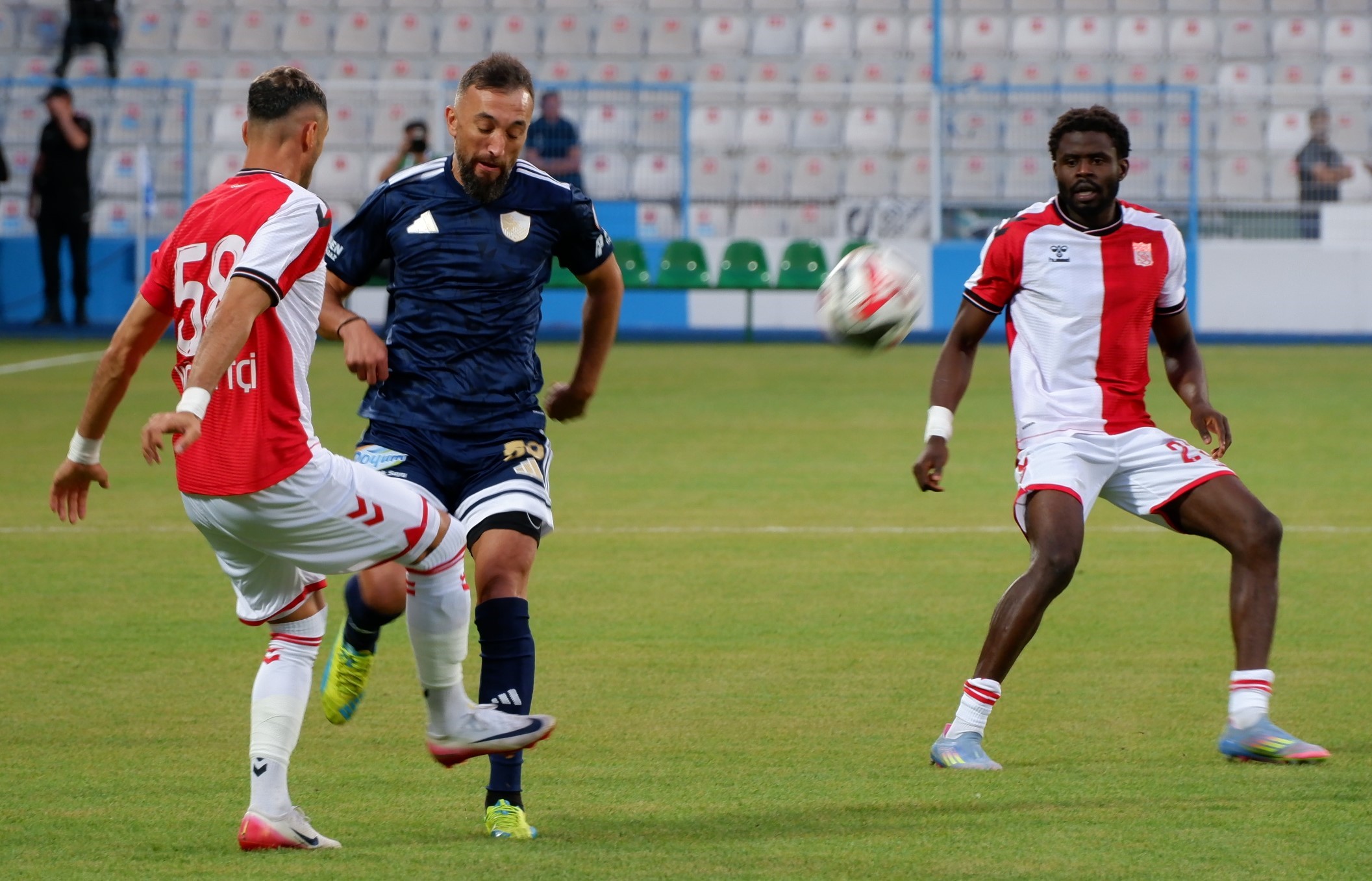 Maçın ilk yarısı karşılıklı ataklarla geçerken, ev sahibi ekip 22. dakikada gole yaklaştı. Mustafa Fettahoğlu’nun ceza sahası dışından yaptığı sert şutu, Sivasspor kalecisi Ali Şaşal Vural iki hamlede kontrol etti.