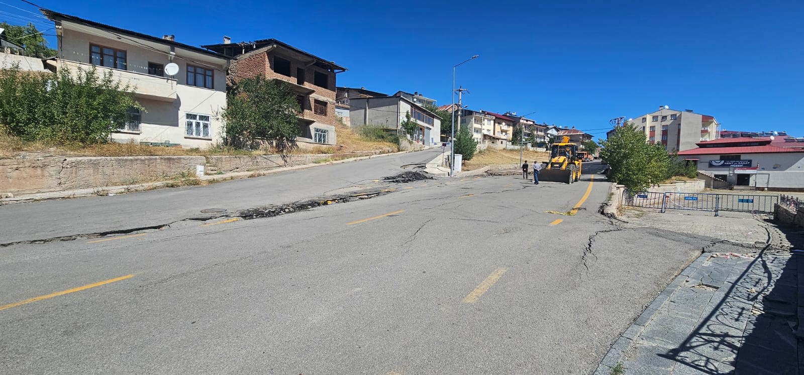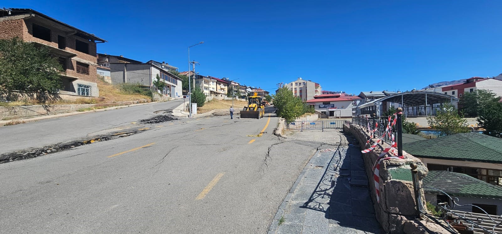 Erzurum’un İspir ilçesinde 20 Ağustos’ta meydana gelen heyelanın ardından bölgede tahliye edilen alanlarda çalışmalar tüm hızıyla devam ediyor. Karayolları Genel Müdürlüğü ekipleri, kayan zemin üzerinde düzenleme yaparak yarılan ve çatlayan bölgelere asfalt dökmeye başladı. Bu sayede, olası yağışların vereceği zararın önüne geçilmesi hedefleniyor.