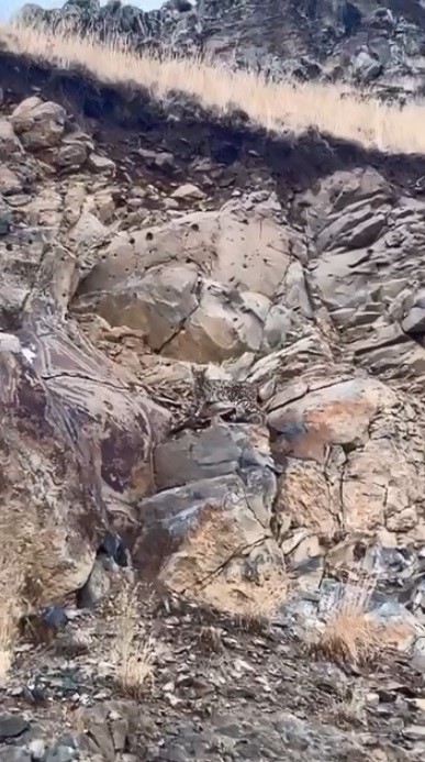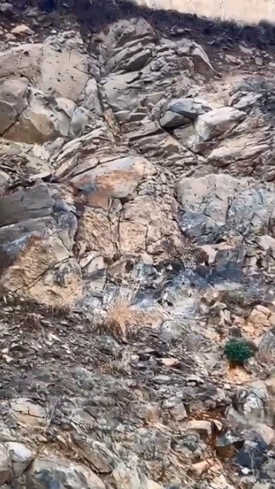 Kars’ın Sarıkamış ilçesi Karakurt bölgesinde seyir halinde olan bir vatandaş, nadir görülen Anadolu vaşağıyla karşılaştı. Cep telefonu kamerasıyla kaydedilen vaşak, doğaya uyumlu kürkü sayesinde kayalıklar arasında güçlükle fark edildi.
