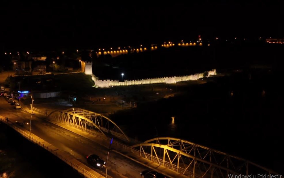 Tarihi Ardahan Kalesi’nin ışıklandırılmış hali drone ile görüntülenirken, sosyal medyada paylaşılan kareler kısa sürede büyük beğeni topladı.