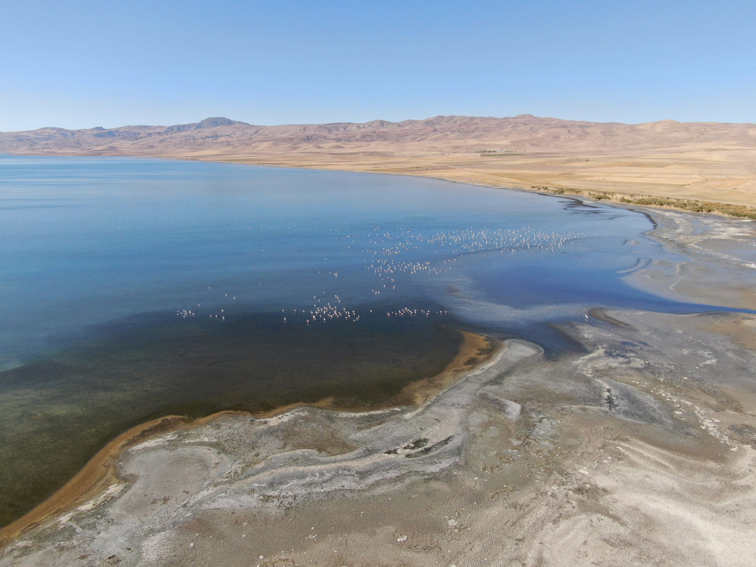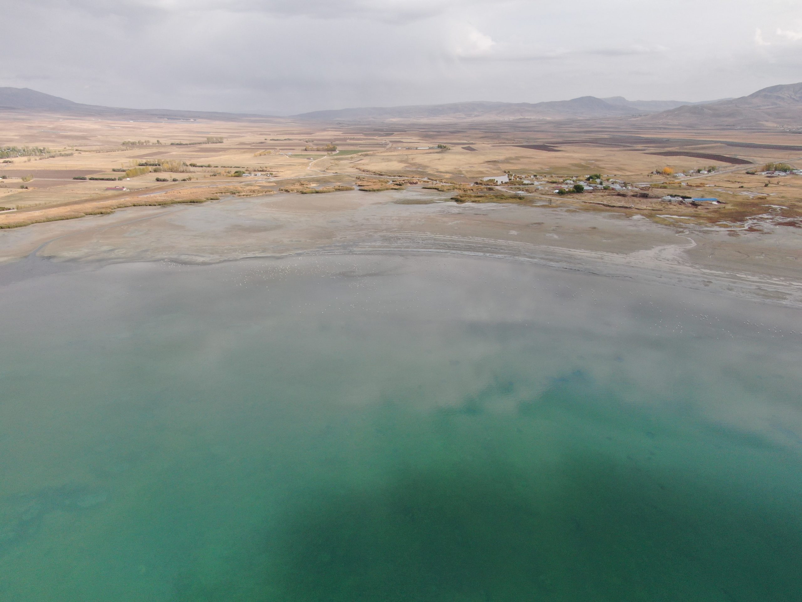 Akkuş, 1995’ten bu yana gölde yaklaşık 6 kilometrekarelik bir alanın tamamen karaya çıktığını belirtti. Erçek Gölü’nün özellikle sığ alanlarının flamingolar ve diğer kuşlar için önemli bir beslenme ve üreme habitatı olduğuna dikkat çekti.