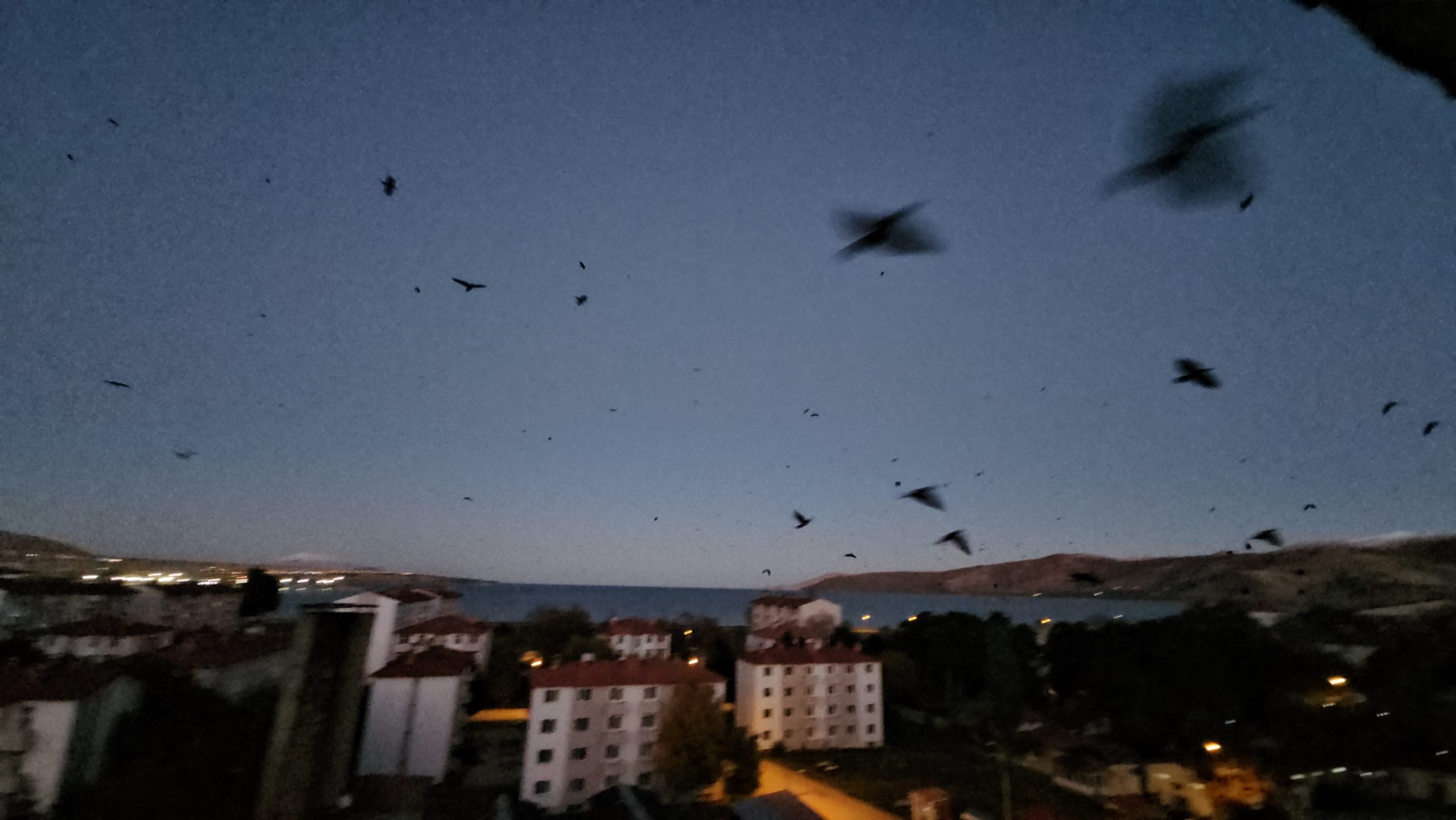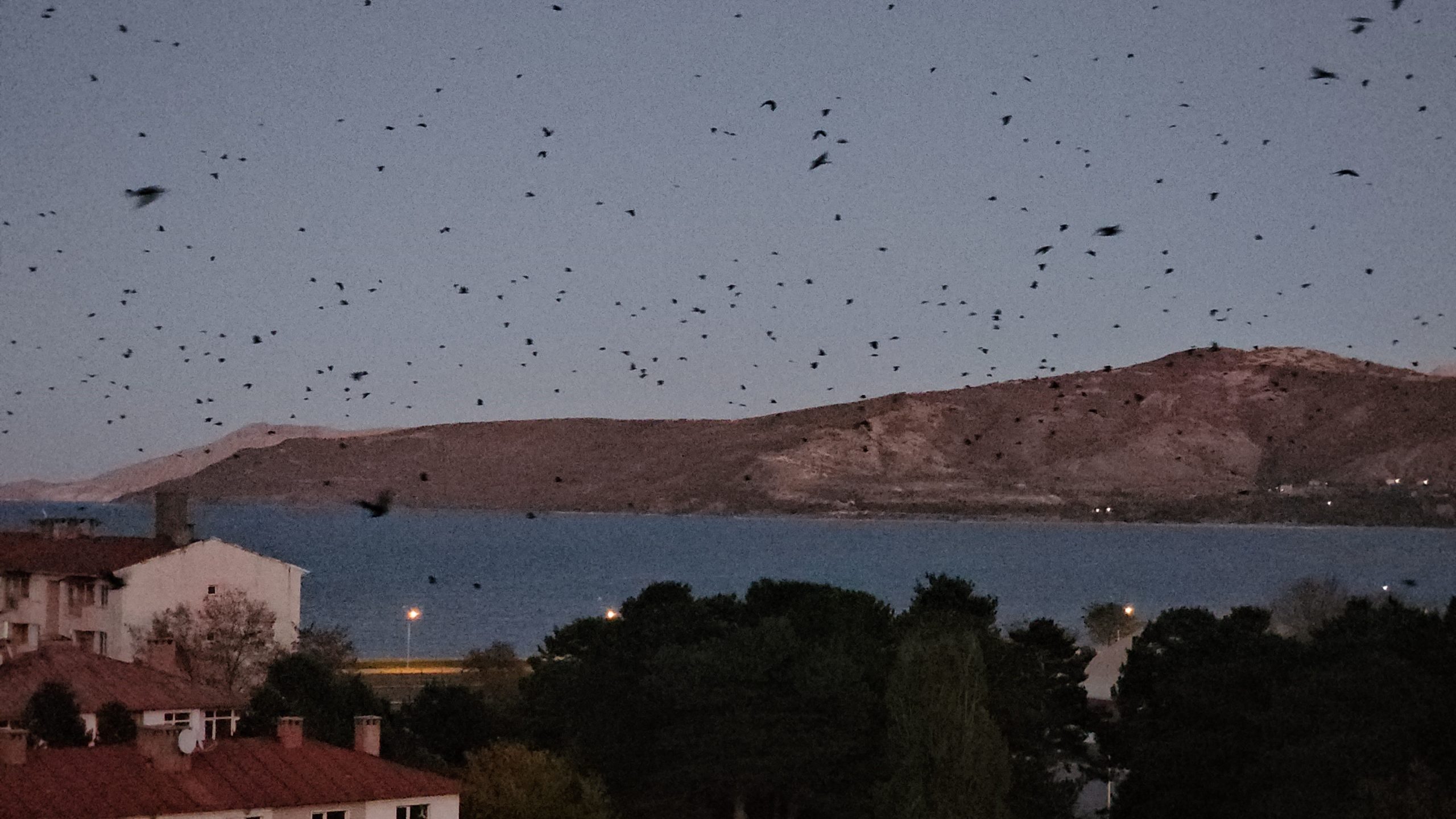 Bitlis’in Tatvan ilçesi semalarında akşam saatlerinde görülen binlerce karga, gökyüzünde oluşturdukları manzarayla dikkat çekti. İlçe merkezinin farklı noktalarından görülen sürüler, uzun süre gökyüzünde daireler çizerek uçtu.