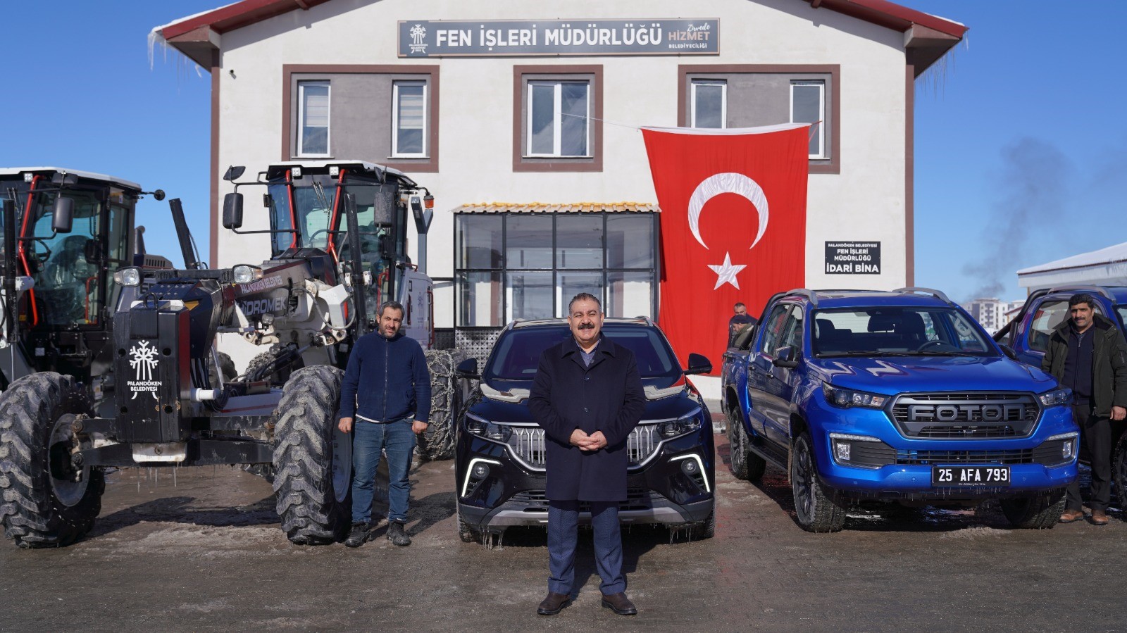 Bu kapsamda Palandöken Belediyesi envanterine; 2 greyder, 2 kazıyıcı yükleyici, 1 ekskavatör, 2 arazi aracı, 3 binek araç, 1 hayvan toplama aracı ve 1 minibüs olmak üzere toplam 12 yeni araç kazandırıldı. Yeni araçlar, belediye tarafından 85 dönümlük alanda hizmete alınan modern şantiye kompleksinde düzenlenen törenle tanıtıldı.