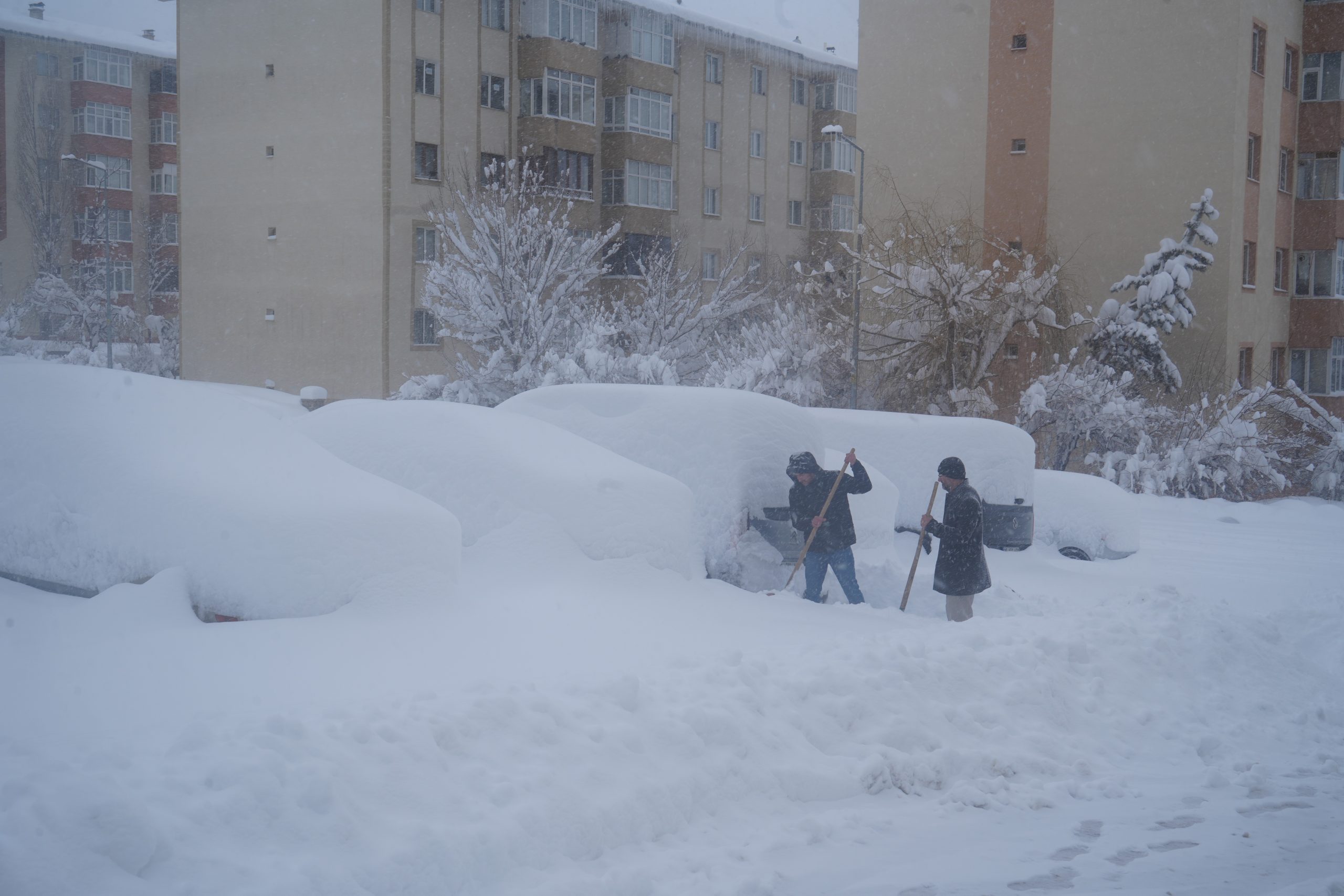 Erzurum’da dün gece saatlerinden itibaren etkisini artıran kuvvetli kar yağışı, kent genelinde yaşamı olumsuz etkiledi. Sabah saatlerinde evlerinden çıkan vatandaşlar, yer yer 50 santimetreyi aşan kar kalınlığıyla karşılaştı. Yoğun yağış nedeniyle çok sayıda araç park edildiği yerden çıkarılamazken, şehir içi ulaşımda aksamalar yaşandı.