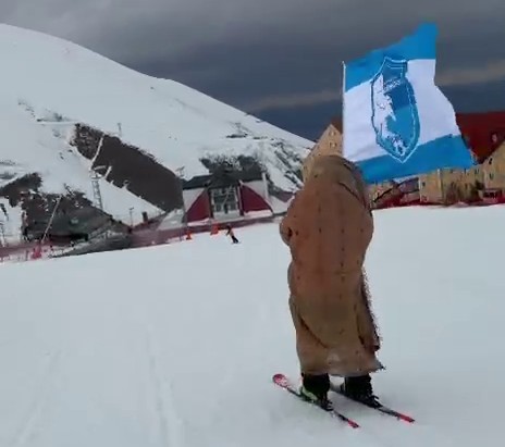 Hanlı, özellikle “Naciye Bibi” tiplemesi ile kayak yaparken çekilen görüntülerle sosyal medyada büyük beğeni topluyor. Son paylaşımlarında, ehramlı Naciye Bibi’nin Erzurumspor bayrağı ile pistte kaydığı anlar takipçileri gülümsetti.