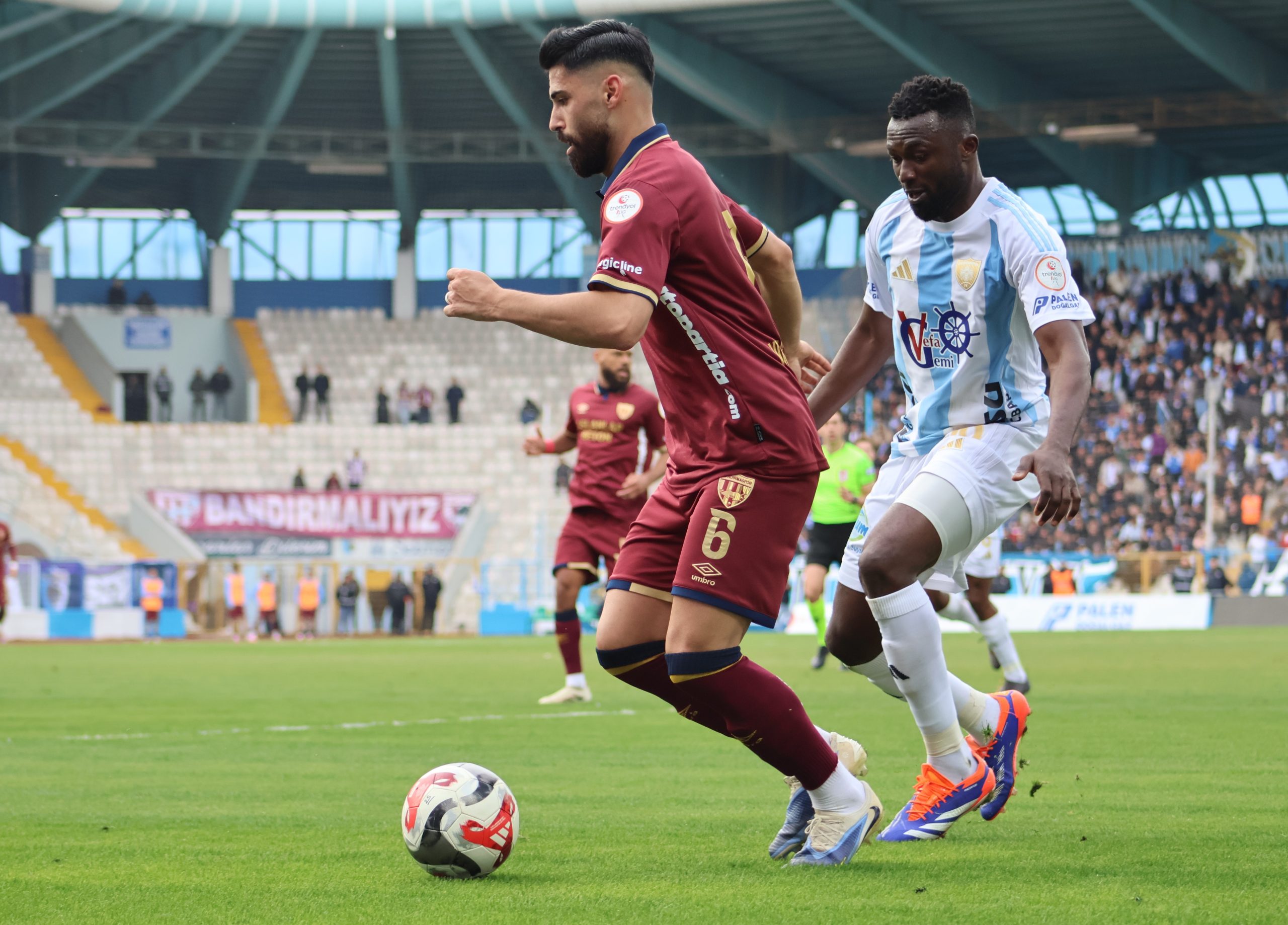 İkinci yarıda oyun daha dengeli bir hal alırken, Bandırmaspor geçiş hücumlarıyla tehlike yaratmaya başladı. 57. dakikada Fall’ın ağlara gönderdiği top ofsayt gerekçesiyle geçersiz sayıldı. Ancak Balıkesir temsilcisi pes etmedi. Dakikalar 83’ü gösterdiğinde Hikmet’in sağ kanattan yaptığı ortada Atınç Nukan yükseldi ve kafa vuruşuyla topu ağlara göndererek takımını öne geçirdi.